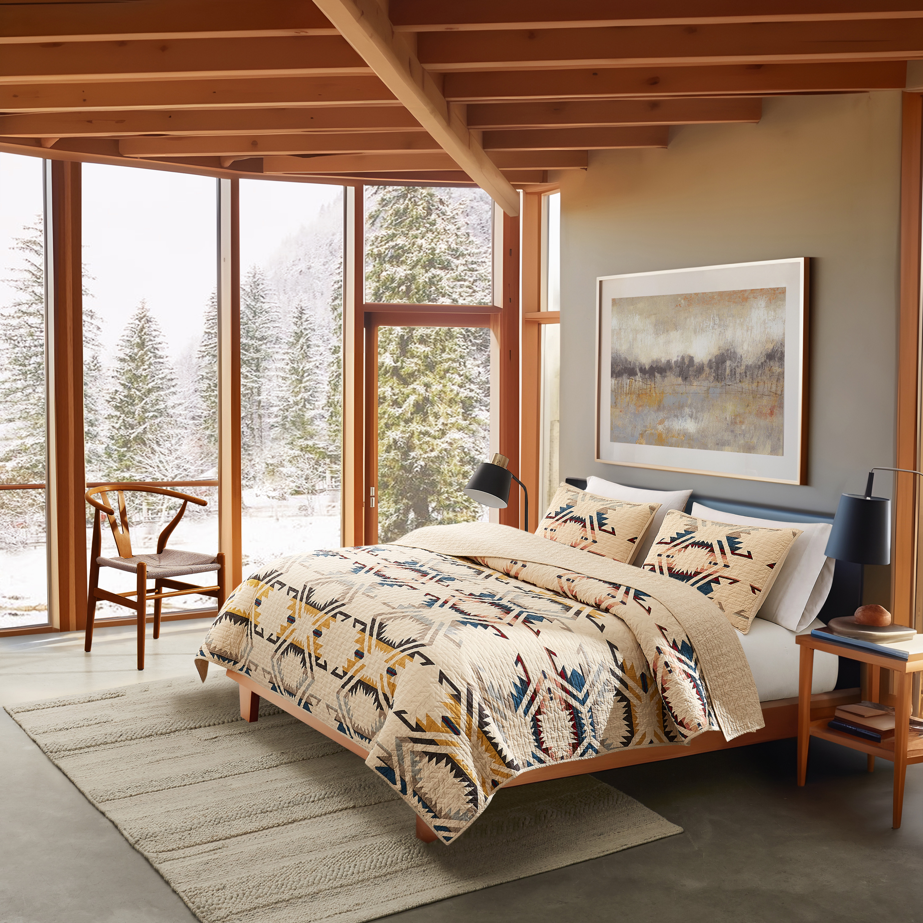 Rooted in Pendleton’s iconic design heritage, the White Sands Quilt Set brings warmth, character, and timeless style to the bedroom. A beautiful blend of comfort and craftsmanship, it feels equally at home in rustic retreats and modern spaces. A strong match for shoppers looking for heritage quilt sets, Pendleton bedding gifts, or classic cotton quilts for winter.